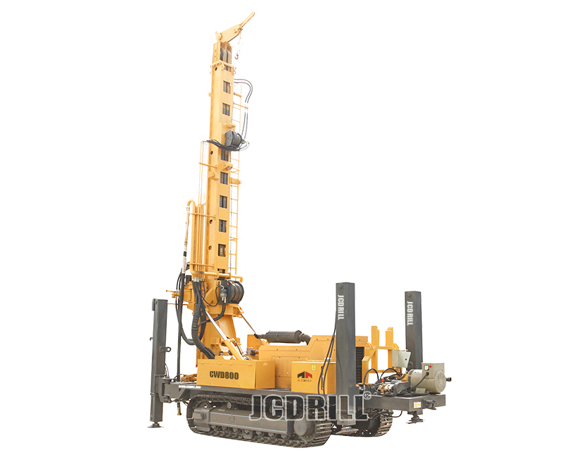 يمكن لجهاز الحفر المثبت على الزاحف CWD800 الحفر في جميع أنواع التكوينات باستخدام الحفر بالطين في التكوينات الناعمة والمطرقة الهوائية DTH في الحفر الصخري، حيث تُستخدم المطرقة DTH في الحفر الصخري، ويتم تفريغ الخبث بواسطة ضغط الهواء، وكفاءة المرحلة الخارجية أعلى بعشر مرات من الحفر الدوار التقليدي.
