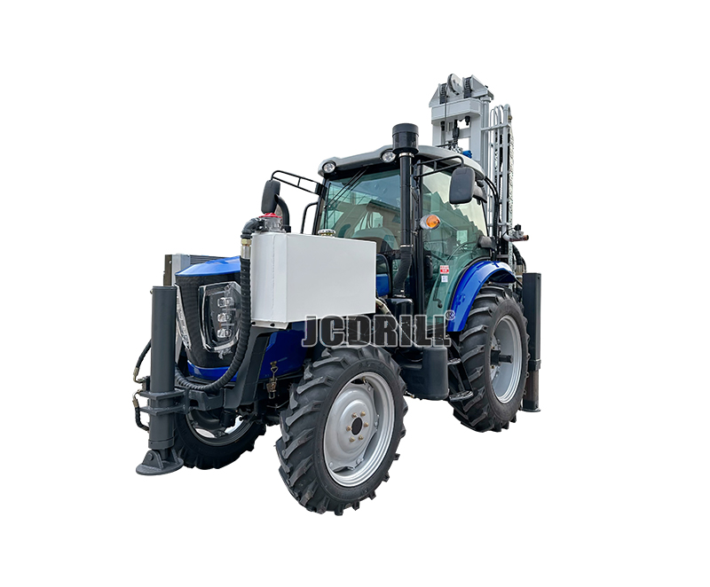 يستخدم جهاز الحفر محرك ديزل الجرار كقوة تشغيل للجهاز. الجزء العامل من جهاز الحفر مدمج مع الجرار. الجرار هو جهاز الحفر، وآلة النقل، وقوة تشغيل الجهاز. عند الذهاب إلى موقع العمل، يتمتع الجرار بقدرة نقل. يمكن تركيب ضاغط الهواء، مما يوفر استثمار مركبة النقل، ويخفض التكلفة ويجعل العمل أكثر ملاءمة. وهو مجهز أيضًا بدراجة ثلاثية العجلات لتحميل أنبوب الحفر. نظرًا لأن الهيكل صغير ومرن، فإن الجرار أكثر ملاءمة للقيادة والتشغيل في مختلف ظروف الطرق والمناسبات في البرية، والقرى، وما إلى ذلك. ويمكن لبيوت القرى والساحات الزراعية الدخول إلى البئر.
