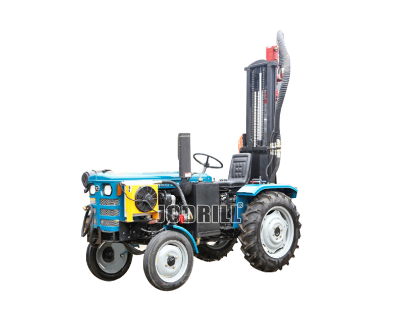 يستخدم جهاز الحفر محرك ديزل الجرار كقوة تشغيل له. الجزء العامل من جهاز الحفر مدمج مع الجرار. الجرار هو جهاز الحفر، وآلة النقل، وقوة تشغيل جهاز الحفر. عند الذهاب إلى موقع العمل، يمتلك الجرار القدرة على النقل. يمكن تركيب ضاغط الهواء، مما يوفر استثمار مركبة النقل، ويقلل التكلفة ويجعل العمل أكثر راحة. وهو مجهز أيضًا بدراجة ثلاثية العجلات لتحميل أنبوب الحفر. نظرًا لأن الهيكل صغير ومرن، فإن الجرار أكثر ملاءمة للقيادة والتشغيل في مختلف ظروف الطرق والمناسبات في البرية، والقرى، وما إلى ذلك. ويمكن لبيوت القرى والساحات الزراعية الدخول إلى البئر.
