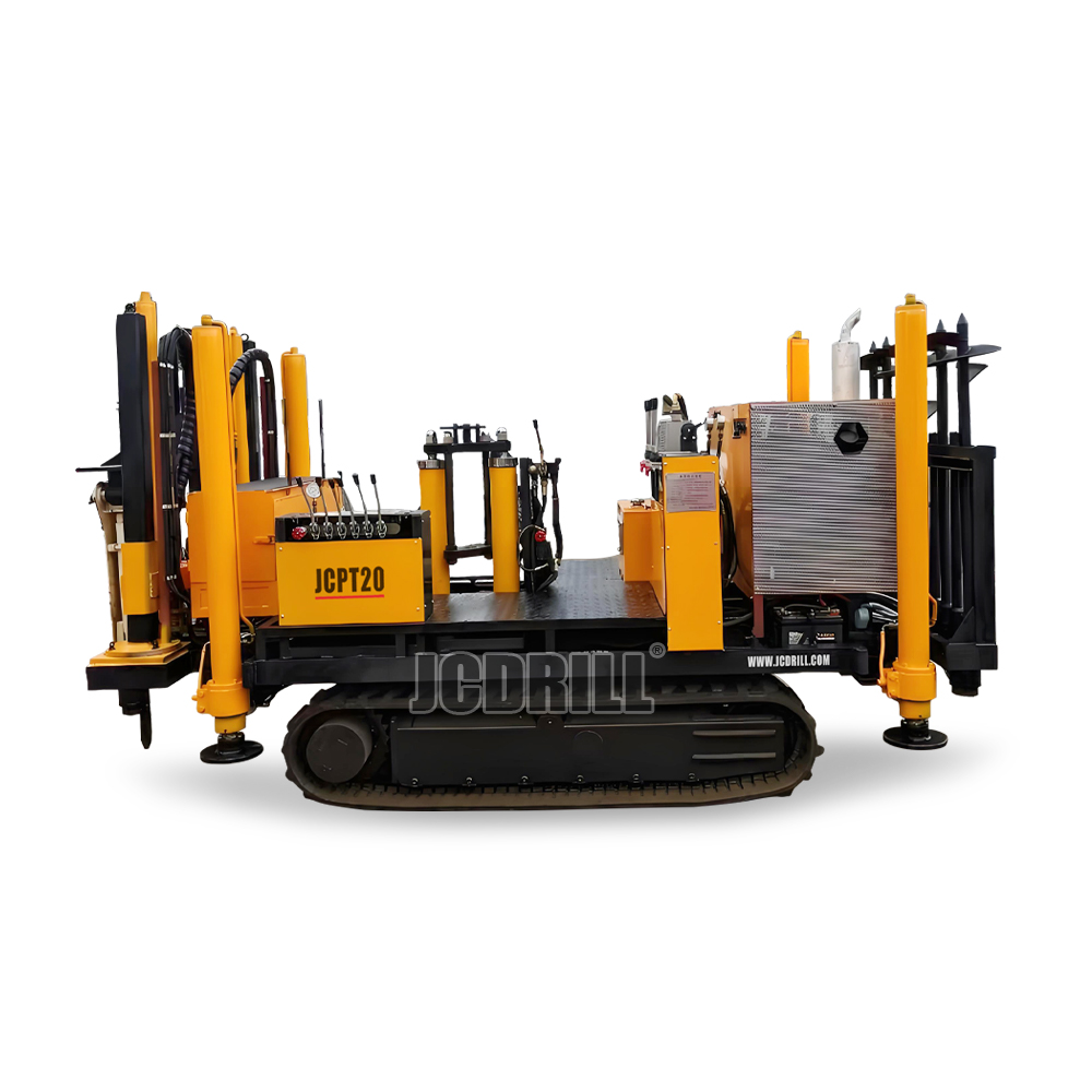 تشير مركبة CPT المجنزرة JCPT-20 إلى جهاز اختبار اختراق المخروط (CPT) المركب على جنازير، مصمم لإجراء تحقيقات التربة في البيئات الصعبة وعلى الطرق الوعرة حيث لا يمكن للمركبات ذات العجلات المرور. توفر مركبات CPT المجنزرة هذه ضغطًا أرضيًا أقل، وثباتًا متزايدًا على التضاريس الناعمة أو غير المستوية، وقدرة أكبر على الحركة، مما يسمح بجمع بيانات CPT بكفاءة في مواقع مثل التربة الناعمة وحقول الرمل والمناطق الموحلة.